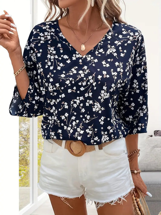 Blusen mit Vintage Blumenmuster, V-Ausschnitt von Billa