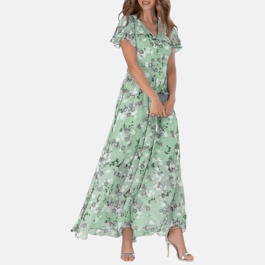 Damen-Blumenkleid mit Rundhals-Ausschnitt, modisch geschnitten