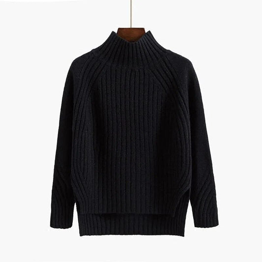 Damen-Pullover: Gestrickter Rundhals-Locker-Schnitt