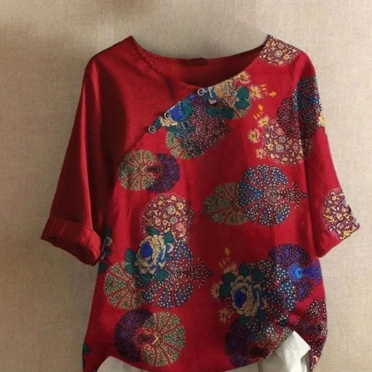 Damenbluse Barbara: Elegante Bluse mit handgearbeitetem Druck