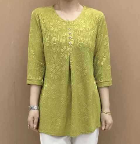 Damenbluse mit V-Ausschnitt, langen Ärmeln, leicht rustikalem Stil (Fudus)