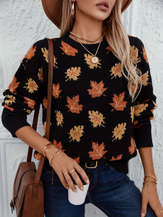 Damenpullover mit Rundhalsausschnitt aus Ahornblatt-Muster