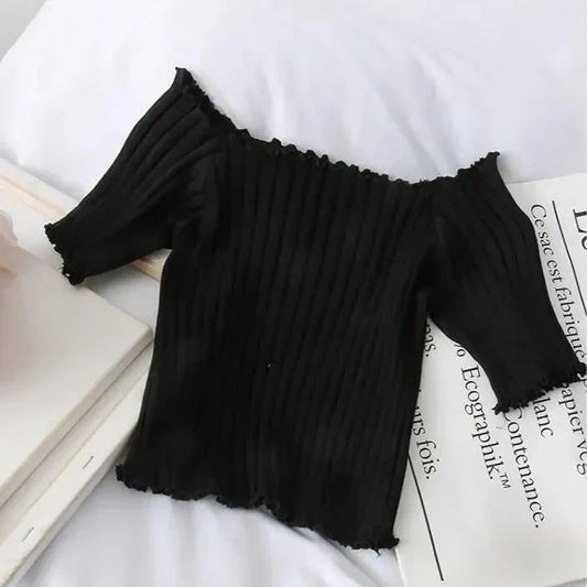 Designer Rippstrick T-Shirts von Fudus, schulterfrei