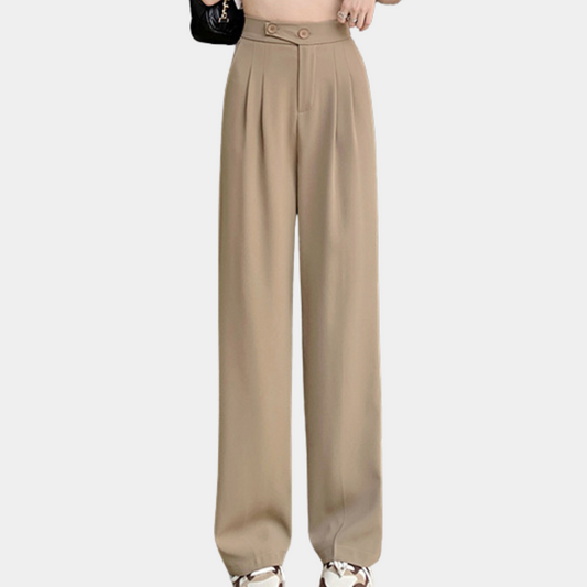 Edle Damenhose in Rubinrot mit fließendem Fall und breiten Paspeln