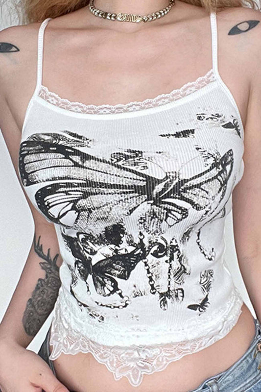 Fudus bedrucktes Cami-Crop-Top aus Spitzen-Patchwork