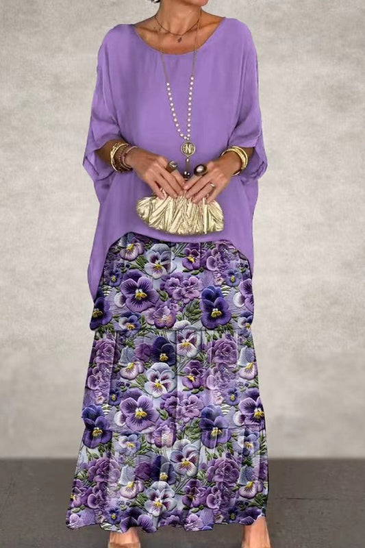 Fudus Batwing Sleeve Top and Layered Skirt Suit
