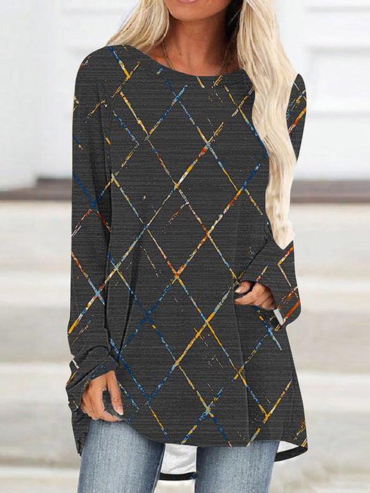 Fudus bedrucktes Langarm-Rundhalskleid