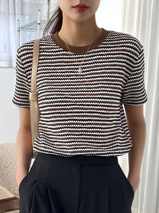 Fudus Casual Korte Mouwen T-shirt met Ronde Hals en Strepen