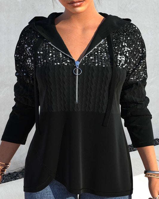 Fudus Kapuzenpullover mit Reißverschluss und Pailletten