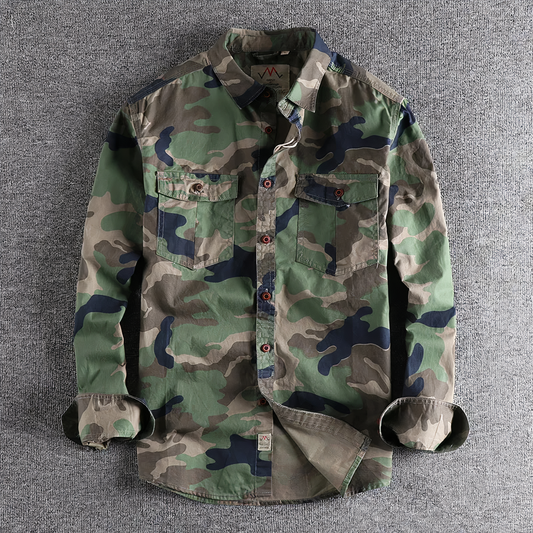 Fudus Langarm-Hemd mit Tarnmuster und Knöpfen