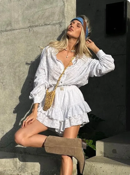 Fudus Set: Weißes Langarmhemd und Shorts