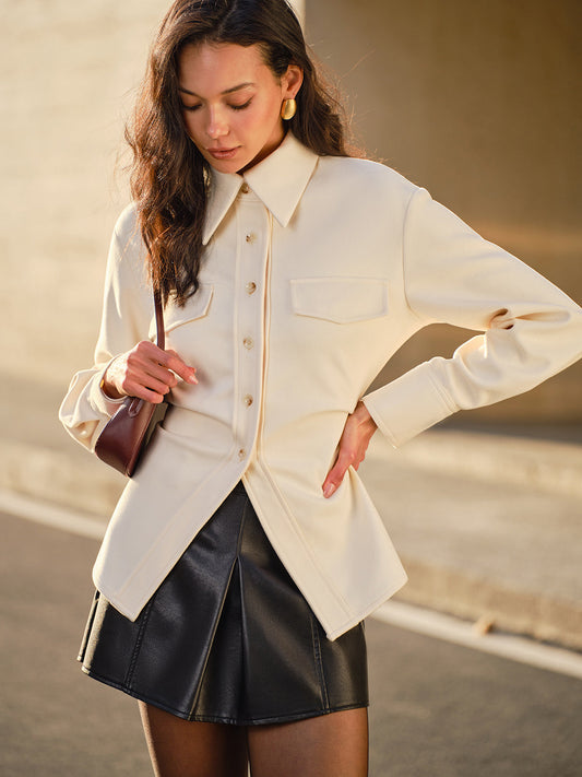 Fudus Slim Fit Blouse with Heart-Shaped Neckline