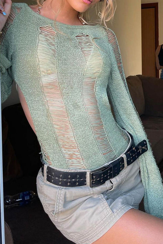 Fudus Slim Knit Top with Cutout and O-Ring Detail