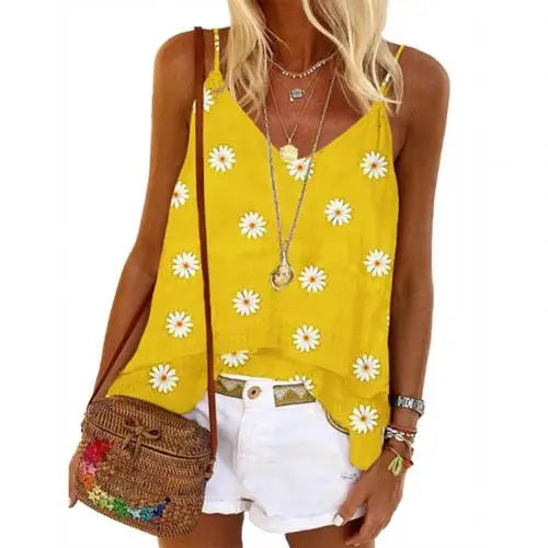 Fudus Spaghettiträger-Top, ärmellos, V-Ausschnitt, lockerer Schnitt, Blumenmuster