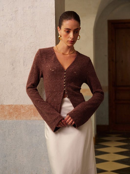 Fudus Spitzenkleid mit V-Ausschnitt und Hohlsaum