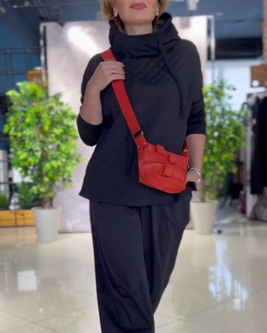 Fudus T-Shirt with Ribbed Ruffle Sleeves and Turtleneck