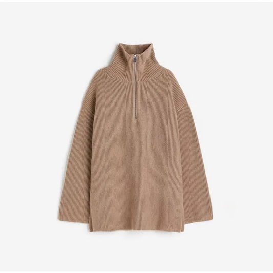 Gestrickte Kalina-Jacke mit durchgehendem Reißverschluss und marmorierter Textur