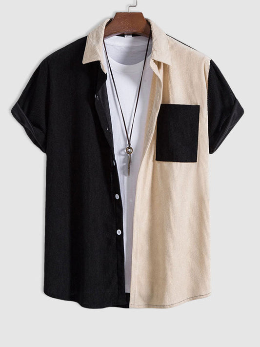 Gusion Kurzarmhemd mit Patchwork-Kordelsaum