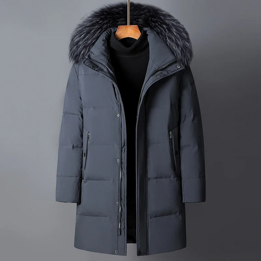 Herren-Parka mit Reißverschluss und Kapuze mit Pelzbesatz