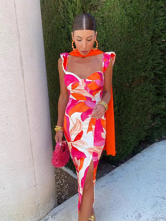 Ismeralda Maxikleid mit Schlitz und V-Ausschnitt