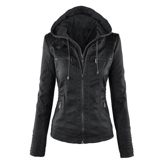Krohn-e | Damen Slim Fit PU-Leder Zip-Up Hoodie
