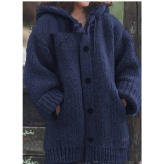 Sarina: Weicher Strickmantel mit Kapuze und Knöpfen