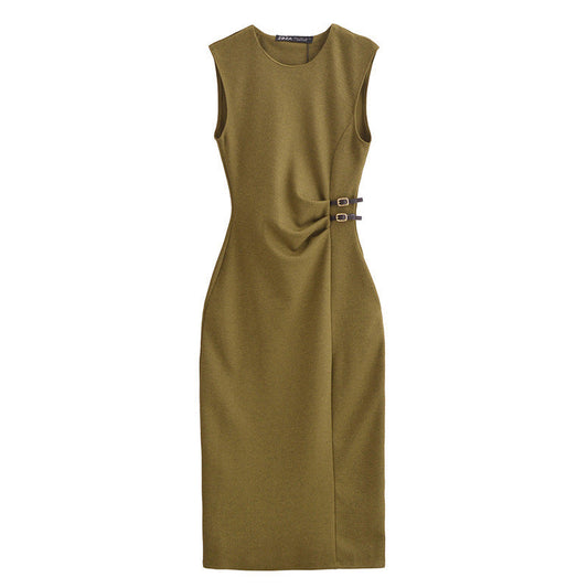 Elegantes ärmelloses Rundhals-Wickelkleid von Fudus