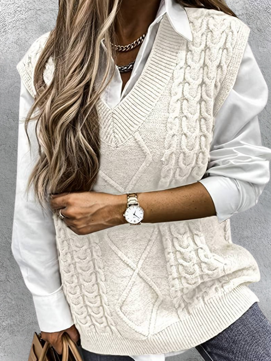 Locker gestrickter Damen-Pullover mit V-Ausschnitt – Modell Eleonore