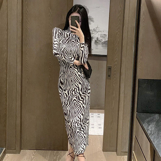 Auffälliges Zebra-Print Bodycon-Kleid von Fudus mit Taillenkneifer