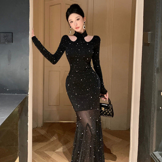 Glamouröses Pailletten-Partykleid mit langen Ärmeln von Fudus