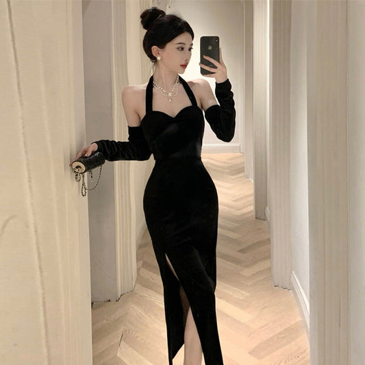 Fudus verführerisches schmales Neckholder-Kleid mit Rückenschlitz