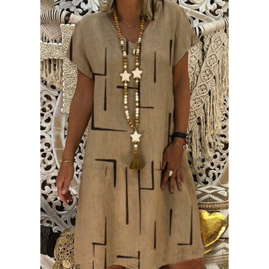 Trendiges Fudus Wellen-V-Ausschnitt Kurzarm-Kleid