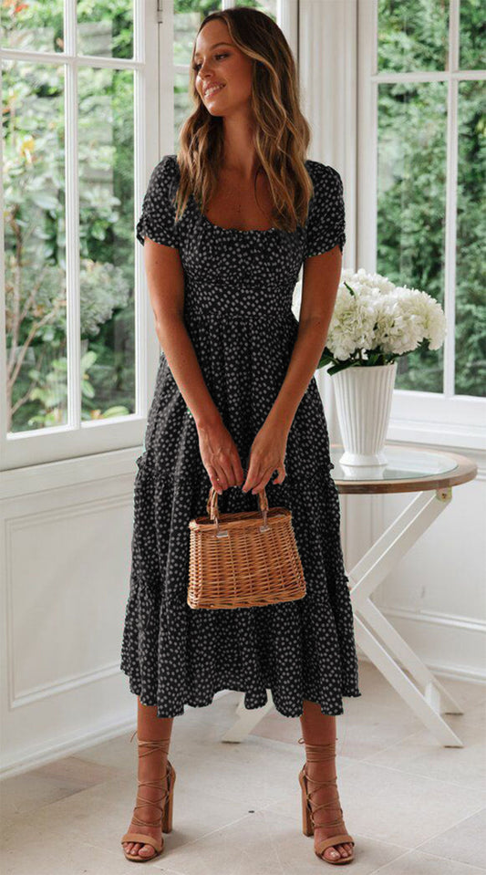 Fudus Quadratischer Ausschnitt Puffärmel Blumenkleid