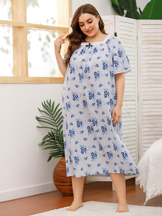 Komfortables Nachthemd aus Spitze, Plus-Size, mit Einsatz von Fudus