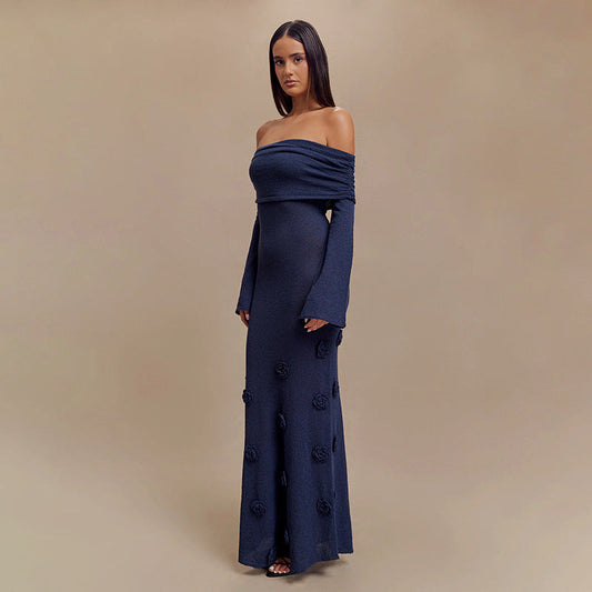 Fudus Fashion Sleeveless Fishtail Dress with Off-the-Shoulder Neckline
