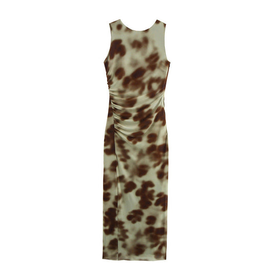 Fudus modisches, sexy bedrucktes, rückfreies knielanges Kleid mit Halskette