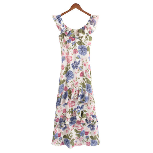 Fudus lockeres Rundhals-Blumenkleid für Frühling und Sommer