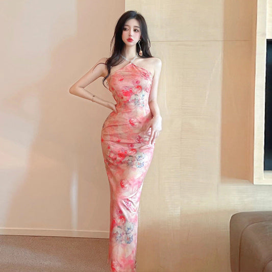 Fudus Rückenfrei-Halterkleid mit Po-Schlitz