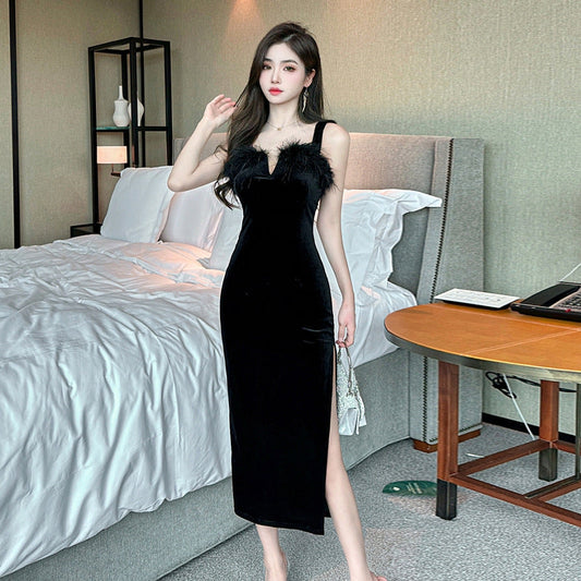 Sexy Samtkleid mit langen Ärmeln von Fudus