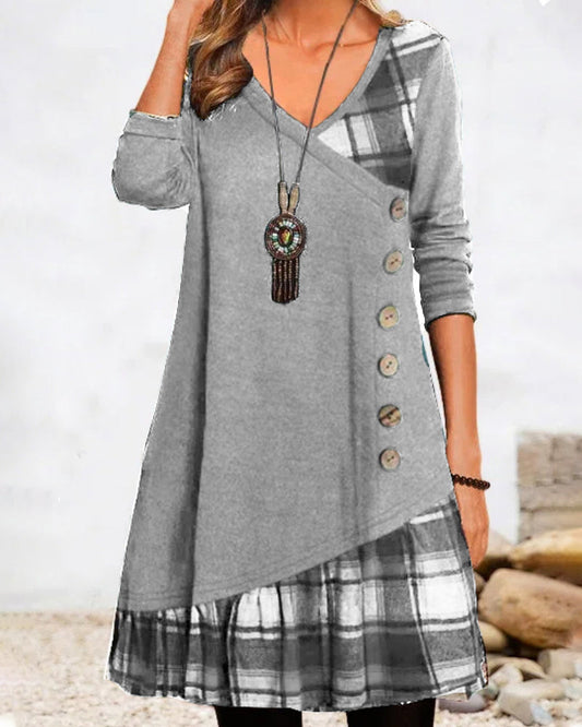 Langärmliges, gerafftes Kleid mit Schulterpartie und seitlichem Schlitz von Fudus