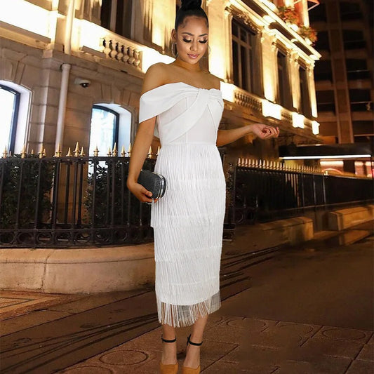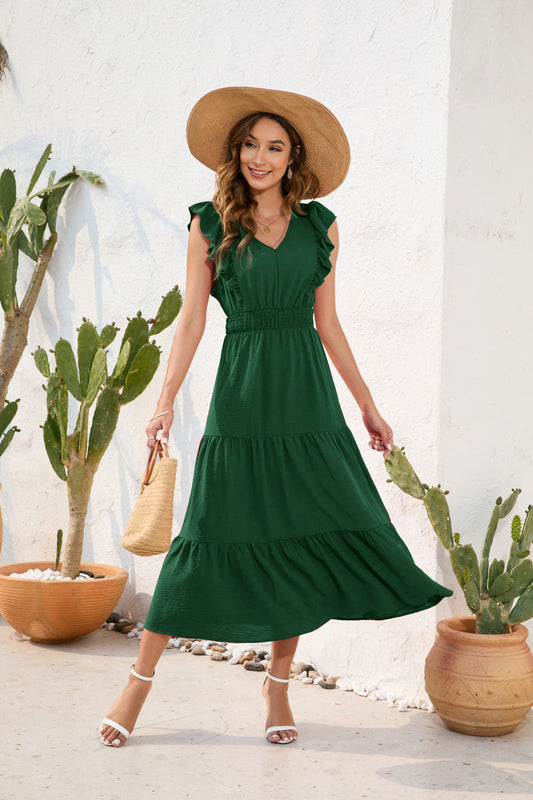 Vylaria: Elegantes Kleid mit V-Ausschnitt und Fransen