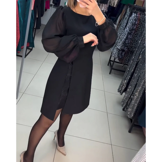 Elegantes knielanges A-Linien-Kleid Therese für Damen mit Laternenärmeln