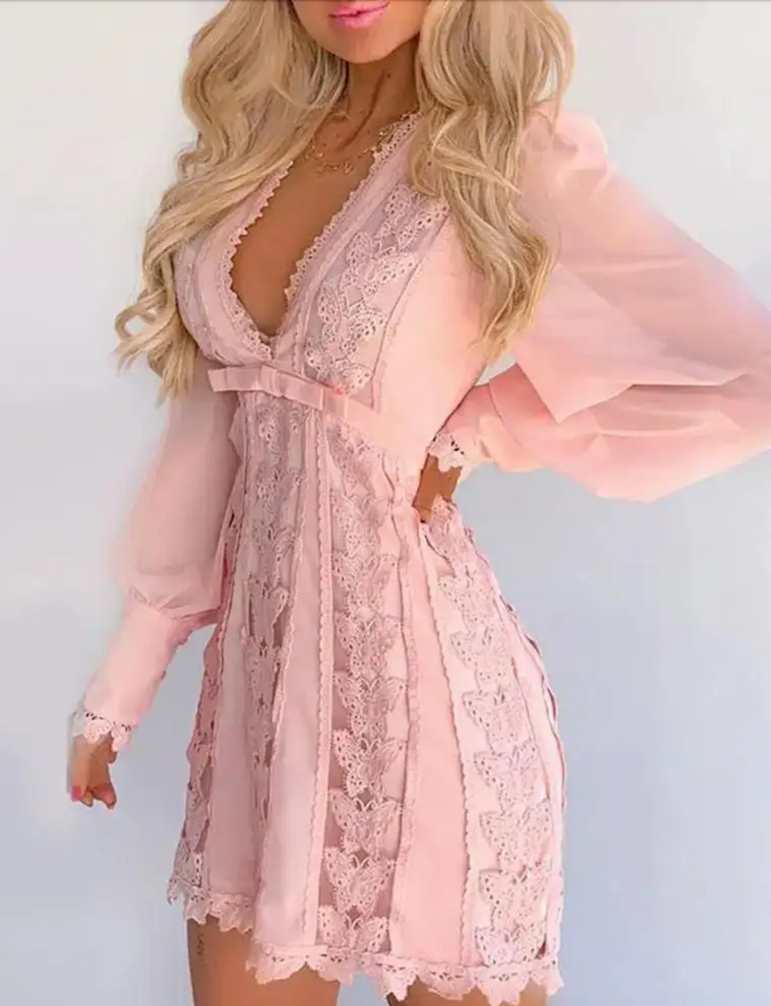 Zeitlose Eleganz mit dem Viva Spitzenkleid und seinen markanten Laternenärmeln. Dieses exquisite Kleid aus lebendiger Spitze bietet ein charmantes, kompliziertes Design voller Raffinesse. Die Laternenärmel verleihen einen skurrilen Touch und machen es einzigartig.