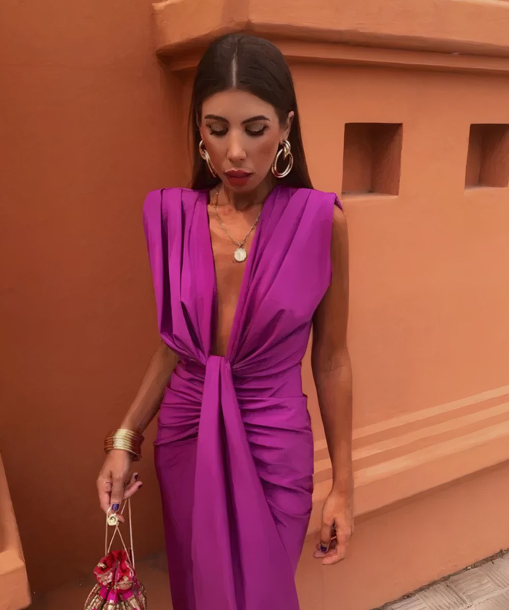 Das Caro Partykleid mit tiefem Ausschnitt ist ein echter Hingucker. Der gewagte Ausschnitt verleiht Ihrem Party-Look kühne Eleganz. Hochwertige Materialien garantieren Komfort und eine schmeichelhafte Passform für einen glamourösen Abend.