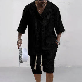 Dieses Strickhemd und Short-Set für Herren ist ein ideales Update Ihrer Kollektion. Der unverwechselbare Stil und der raffinierte Druck zeigen einen bemerkenswerten Sinn für Mode. Das Ensemble mit kurzen Ärmeln und Shorts bietet Alltagskomfort und ist aus hochwertigem, weichen und langlebigem Stoff gefertigt. Perfekt für Strand oder Stadt – zeigen Sie Ihren individuellen Stil mit Leichtigkeit.