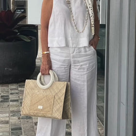 Der Adley Ärmellose Anzug aus Baumwolle und Leinen ist ideal für modebewusste Frauen, die Komfort und Eleganz schätzen. Hochwertige Baumwolle-Leinen-Mischung, hervorragende Passform und stilvolle Silhouette. Perfekt für warme Tage, vielseitig für Büro und Freizeit.