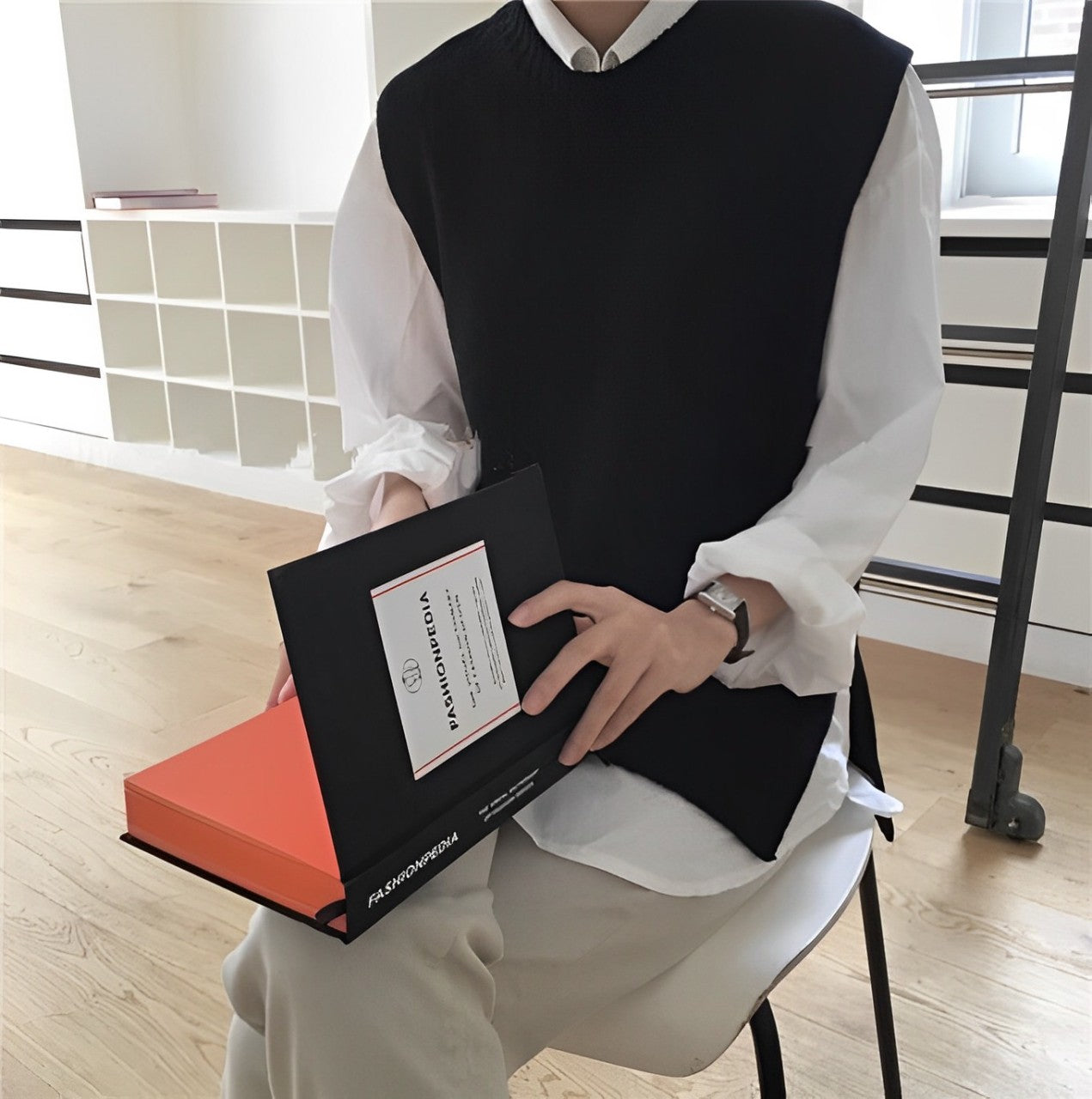 Die Alva Sweaterweste im stilvollen koreanischen Design bietet eine bequeme und lässige Passform. Der weite Schnitt und der geteilte Saum schaffen einen modernen Look für den Alltag. Perfekt für den Lagenlook oder solo getragen.