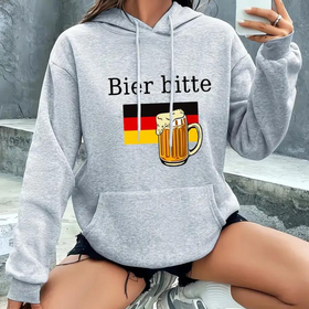 Dieser graue Kapuzenpullover mit Kordelzug bietet ein schlichtes, aber auffälliges Oktoberfest-Design. Minimalistisch und vielseitig, ideal für Freizeit und Fest.