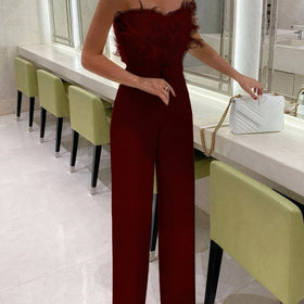 Arika: Edler Jumpsuit mit Feder-Oberteil