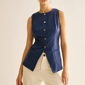 Ärmelloses Hemd von Fudus mit Streifenknöpfen